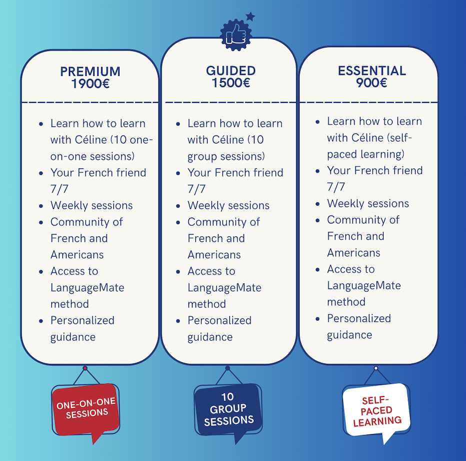 A personalized coaching program combining real conversations with native speakers, expert guidance, and a proven method for busy English native speakers living (or dreaming of living) in France.